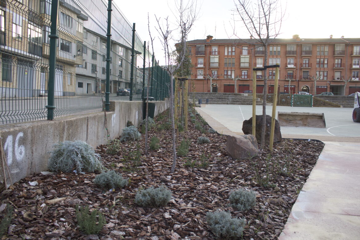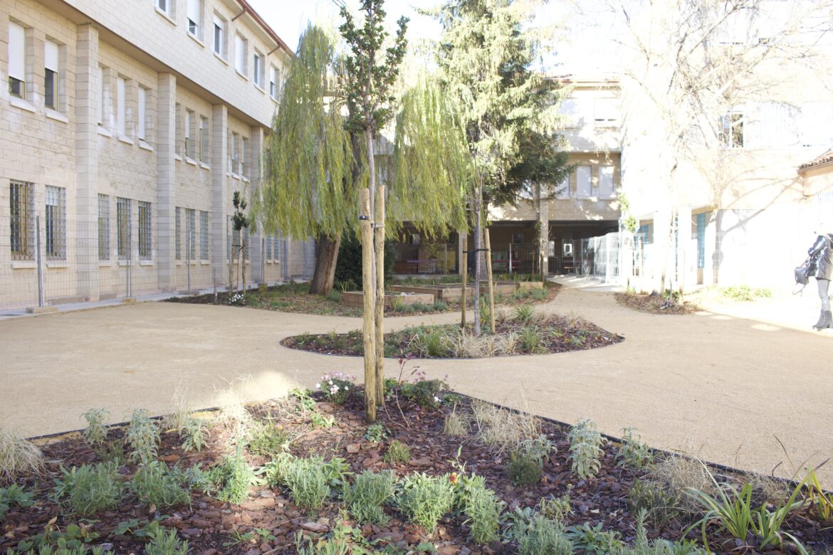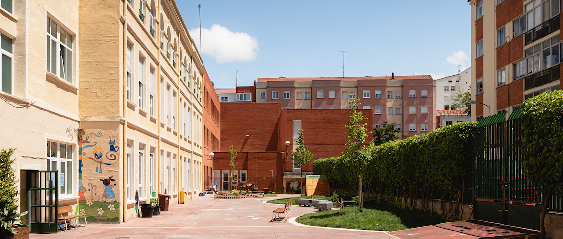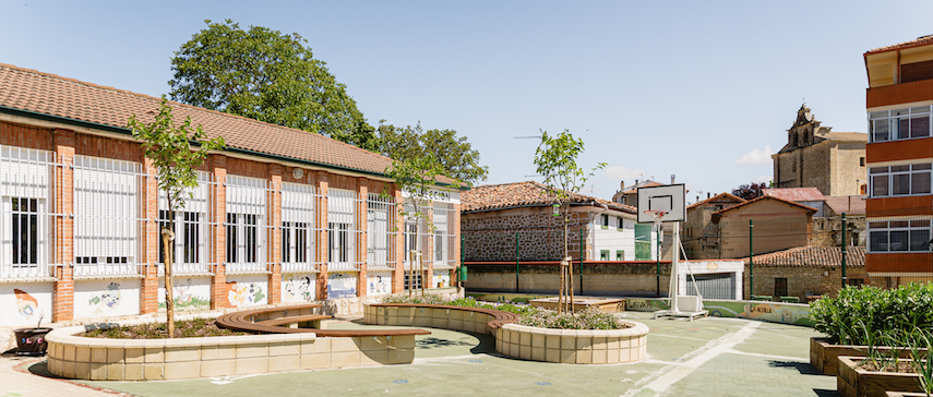 En 2022 la Fundación de Patrimonio Natural de Castilla y León (FPNCYL) convocó un concurso para renaturalizar patios de colegios en las ocho provincias. Nuestro estudio, con un equipo de cuatro paisajistas, fue seleccionado para trabajar en las provincias de Burgos y Soria, en ocho y cinco colegios respectivamente. En total se han realizado actuaciones en trece colegios de Educación Primaria (CEIP) y Secundaria (IES), habiendo finalizado la ejecución este mismo año. Los patios de colegios fueron seleccionados previamente por el FPNCYL a través de un concurso en el que cada colegio presentaba su propuesta.
